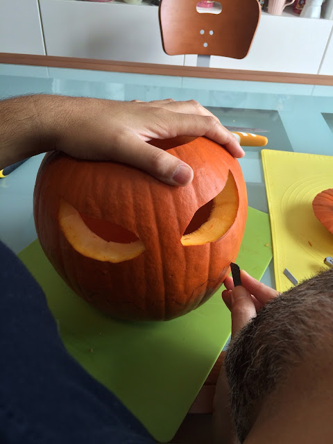 Ho richiuso le sedie mettendole per bene sopra il tavolo, poi ho richiuso l'ombrellone, ho cambiato i vasi alle piante, le ho potate e le ho riposte lungo il frangivento bianco e poi ho....anzi abbiamo aspirato tutte le foglie con un nuovo elettrodomestico che ha comprato mio marito da Leroy Merlin.